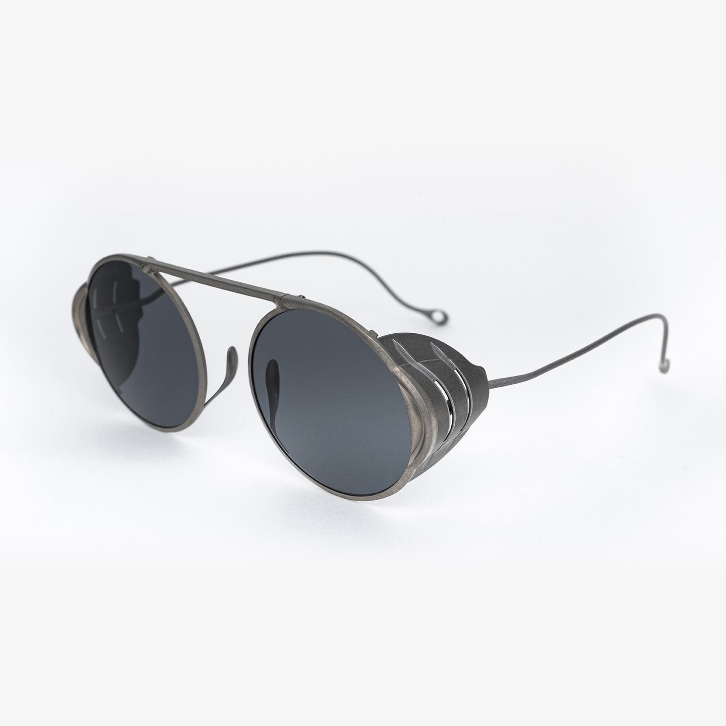 RIGARDS Y BORIS BIDJAN SABERI RIGARDS AND BORIS BIDJAN SABERI working together represents a natural confluence of art and attitude. The pioneering manufacturer of avant-garde handcrafted eyewear and the Barcelona-based designer share a nonconformist mindset and a passion for craftsmanship and craftsmanship excellence. The result is more than a product, it is a spirit: efficiency equals beauty. The first fruit of the collaboration is a reinvention of the aviator style as an all-titanium, ultra-lightweight, universal fit frame with easy lens change to adapt to lighting conditions. The traditional aviator shape adopts a flattering circular design, with corners anchored by multi-dimensional crescent shapes. Removable side shields, carved like Gothic trefoil arches, transcend light protection to become psychological shields: medieval armor constructed with modern technology, suggesting insect exoskeletons from a techno-organic future. Interwoven into the shields are nods to Sabieri's symbolic affinity with the number eleven in the form of two thin engraved grooves. Unique character is incorporated into the frames through RIGARDS' signature "Time Machine" hand finishing, creating a unique patina. The exceptional quality and functionality of the materials and construction are evident to the eye and touch, from the frames to the optional necklace chain and glasses case made of vegetable-tanned Santa Crose leather.