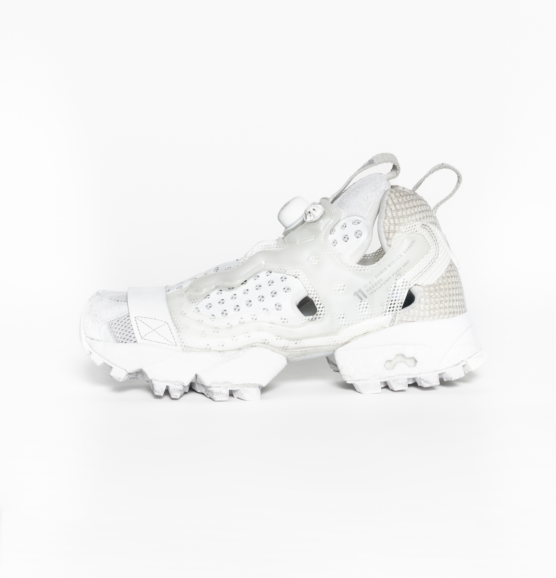 With the ’90s skate universe as a starting point, 11 by Boris Bidjan Saberi × Reebok LTD offers a contemporary reinterpretation of the Instapump Fury that bridges workshop craftsmanship with sports technology. A sharper, more aggressive silhouette; immersion dye baths create a unique patina and an intentionally worn finish—“no two sneakers are the same.” The whole retains “a skateboarding feel” and embraces the “weird” nature of the original silhouette.